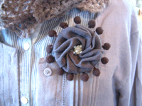 ポンポンブレードで縁取りしたコサージュです。