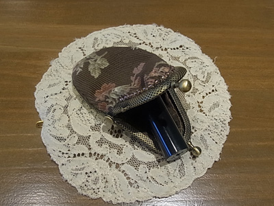 おしゃれなガマ口にビーズをあしらった印カンケースです。