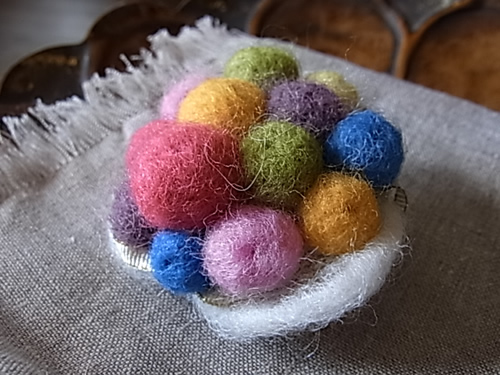 羊毛フェルトをつんつく丸めてフェルトボールを作ります。