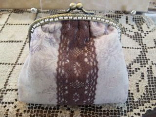 「レースのガマ口金のポーチ」