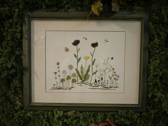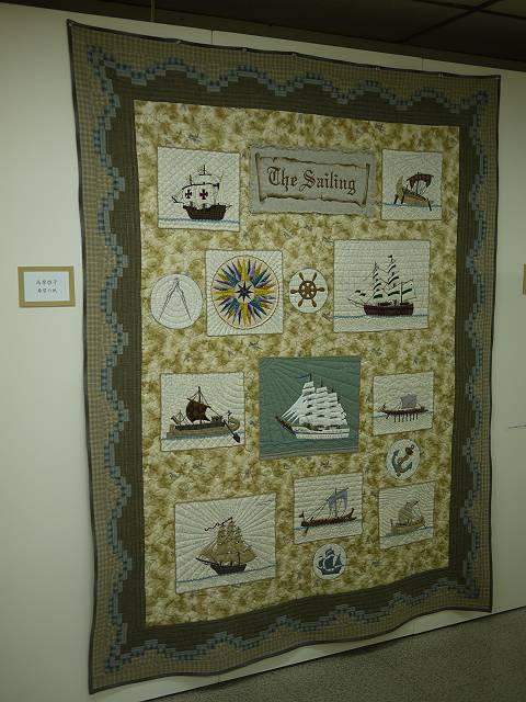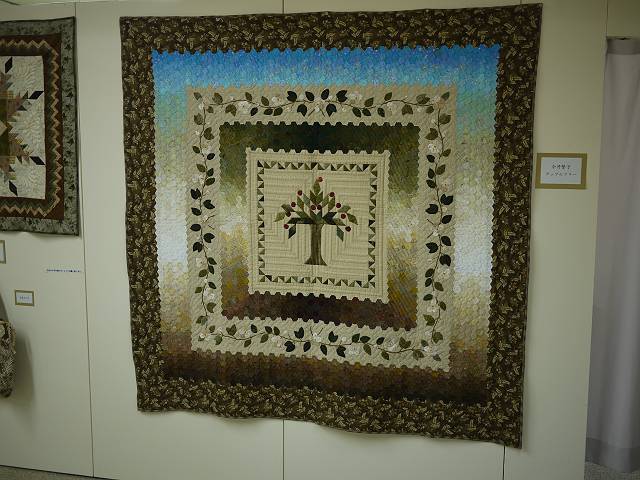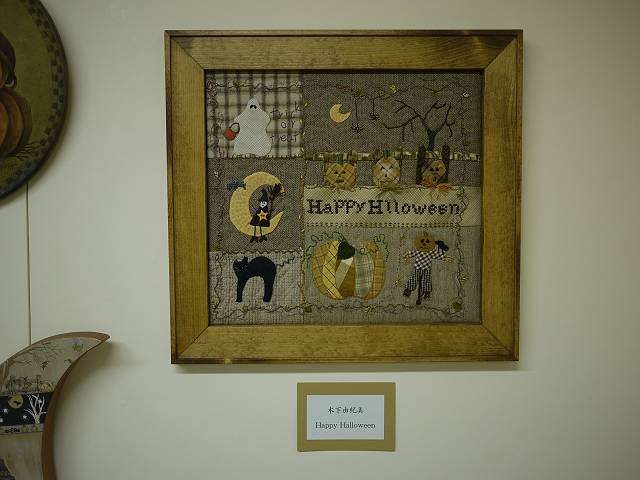 パッチワーク、リボン刺しゅう教室に加えて、昨年より開講しました刺しゅう教室の繊細な作品も、多数展示されています。 また、名古屋ヴォーグ学園の生徒達の見応えある力作も並びました。