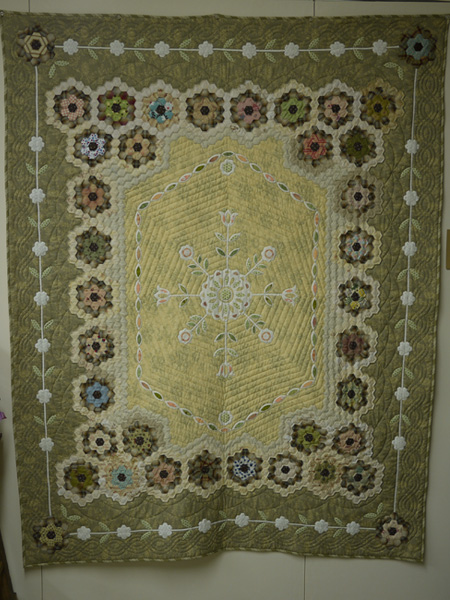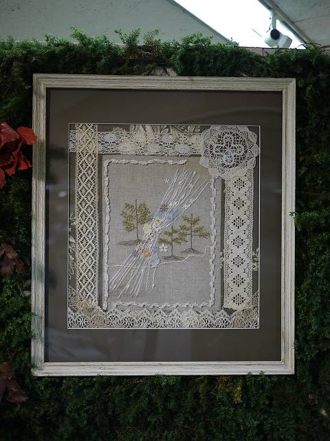 また今回、貴重なアンティークキルトと見事な刺しゅう、レースの作品をお借りし、会場に展示いたしました。