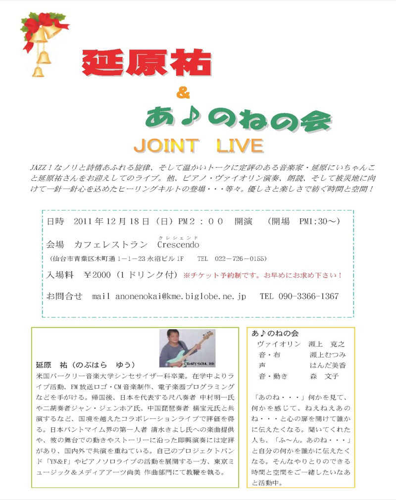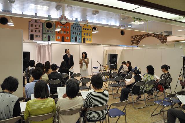 当日はあのねの会のライブを吉原夫妻と鑑賞し、その中でヒーリング・ハート・キルトのタペストリーも紹介していただきました。 |