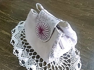 5センチのくるみボタンがアクセント! お友達への気軽なプレゼントのラッピングにいかがですか。 |
