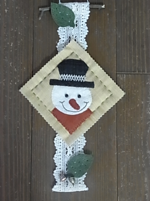 これからの季節にぴったりのフエルトで作るスノーマンの壁飾りです。