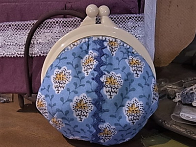 爽やかなソレイアードの生地を使って、春らしいがま口ポーチを作ります。珍しいプラスチックのがま口です。