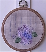 リボン刺しゅうでちょっとした額飾りを作りましょう。「あじさい」のシーズンはもうすぐです。