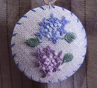 紫陽花をイメージした刺しゅうを刺し、片面にはイニシャルを刺して頂きます。胸元にシックな刺しゅうが映えます